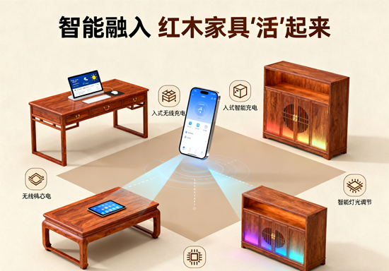 当科技为传统注入新生命,当文化为智能赋予温度,红木家具不再只是"老物件",而是融入现代生活的"新伴侣"。在智能家居的浪潮中,红木家具正书写着属于自己的新时代篇章——既守护着六百年的文化根脉,又引领着未来的创新潮流。这不仅是行业的变革,更是生活美学的升级,让每一个家都成为科技与人文和谐共处的美好空间。