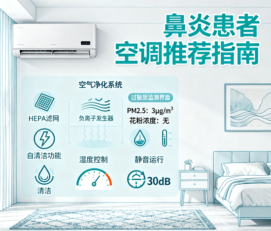 近年来,"健康生活"已成为全民关注的焦点。据《中国过敏性疾病流行病学调查》显示,我国过敏性鼻炎患者已超过1.5亿,且呈现年轻化、高发化的趋势。在室内环境中,尘螨、花粉、霉菌孢子等过敏原,以及装修残留的甲醛、TVOC等有害气体,是引发和加重鼻炎的主要元凶。普通空调在制冷制热的同时,往往将这些过敏原吹散到空气中,加重患者不适。选择一款能有效净化空气的空调,已成为鼻炎患者的迫切需求。