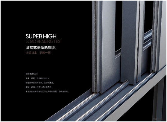 阶梯式高低轨排水,实现快速排水,更胜一筹,无畏风雨天气;创新性结构设计,水密、气密、抗风压性能优越。