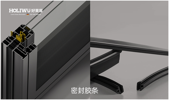 密封胶条是决定门窗气密性的重要因素。好的密封胶条可以充分阻挡室外雨水的侵入,这是提高水密性和气密性的利器,防风保温挡湿必须靠它。好莱屋门窗经多重密封设计,选用优质耐用的汽车级三元乙丙密封胶条,玻外胶条阻隔98%雨水,而室内密封则阻隔空气,让中央密封形成等压空腔,彻底避免因气压差造成水流灌入。