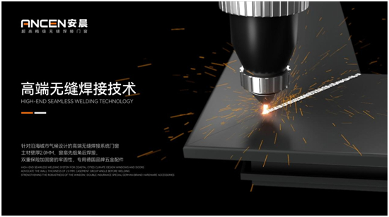 在品牌发展历程中,安晨始终以“为用户创造极致的体验”为驱动力,掌握铝合金窗扇无缝焊接关键核心技术及无缝焊接窗扇表面处理专业技术;通过创新设计,研发生产出符合我国南北气候特征的无缝焊接窗纱一体断桥平开窗系列产品。