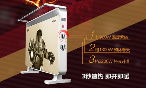 漫威爱好者有福啦!正如你所见,这钢铁侠不是P上去的,而是艾美特与漫威的合作款,一改取暖器的单调外观,不能更酷炫。正如钢铁侠,这款取暖器的“身体素质”也十分强大,可以浴室取暖,通过国家IPX2测试,品质有保障。