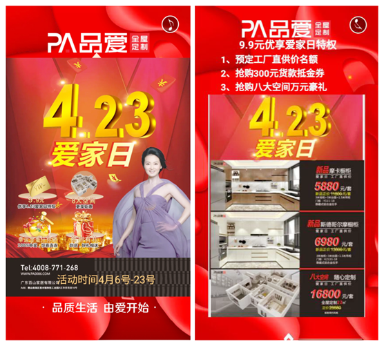 同时,四月也是品爱全屋定制的“爱家月”。品爱全屋定制将每年的4月23日作为“爱家日”,旨在呼吁更多的人关怀家庭并反思自己的爱家方式。最近,品爱全屋定制就发布了“爱家日”系列优惠政策,让更多人能直接参与其中。