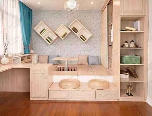 清新淡雅的北欧风榻榻米,材质采用的是色彩温暖的夏洛橡木,仿佛来自北欧的温暖问候,