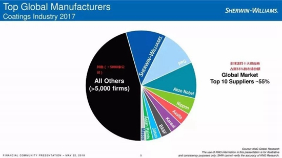2018年5月23日,美国东部时间下午2:30,宣伟涂料发布了一份有关全球涂料行业的PPT,共247页。小编为了方便大家阅读,特意摘取了重要内容进行翻译,以供参考。