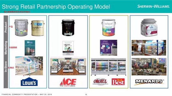 宣伟涂料主要通过“商店零售”、“市场营销”、“产品组合”三大方式的互相配合形成强大零售伙伴关系运作模式。