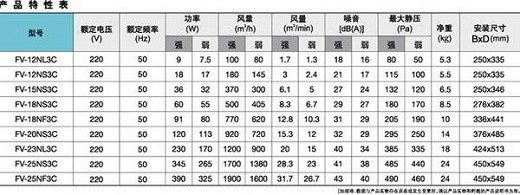 许多品牌都有风量500立方的小型家用新风,适合小公寓,大公寓不够可以装两台。贴张松下的新风机参数表,风量从100到1900立方米/小时(大风量因为流速快噪音大,一定要配大风管和长条出风口,不能用小圆口)
