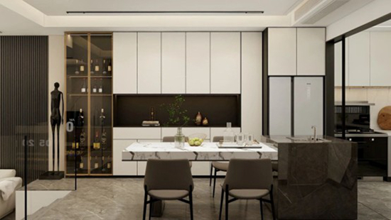 客餐厅与厨房联动,形成开放式互动场域