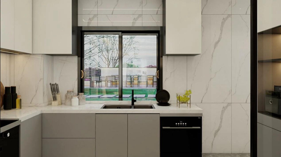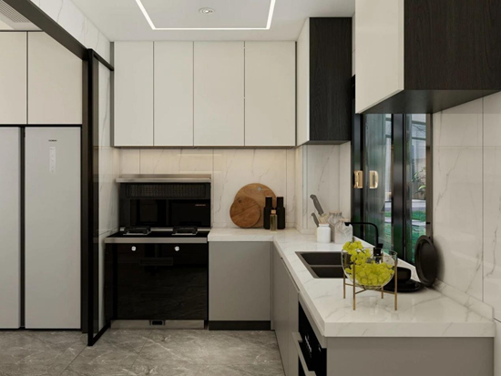 厨房柜体的设计是“美学表达”与“功能落地”的结合体,既以简约高级的视觉呈现契合现代家居审美,又以精细化的收纳与布局,为日常烹饪、用餐提供高效且舒适的体验,最终让餐厨空间成为家的 “质感生活容器”。