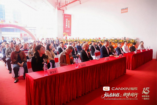 2025年12月19日,“灿启新程·欣伴同行”中山市灿欣电器制品有限公司15周年暨乔迁盛典,在中山东凤镇灿欣电器新总部隆重举行。镇党委副书记、镇长郑雄,副镇长谭兆力,和泰村党委书记、村委会主任吴少芳,和泰村党委副书记、村委会委员曾培华等各级领导出席活动,与行业伙伴、各界嘉宾齐聚一堂,共同见证灿欣电器扬帆启航的历史性时刻。