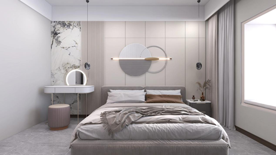 适配人群:喜欢极简生活、追求空间整洁感的都市白领,或是小户型家庭,用简约设计弱化家具存在感,让卧室更显开阔。